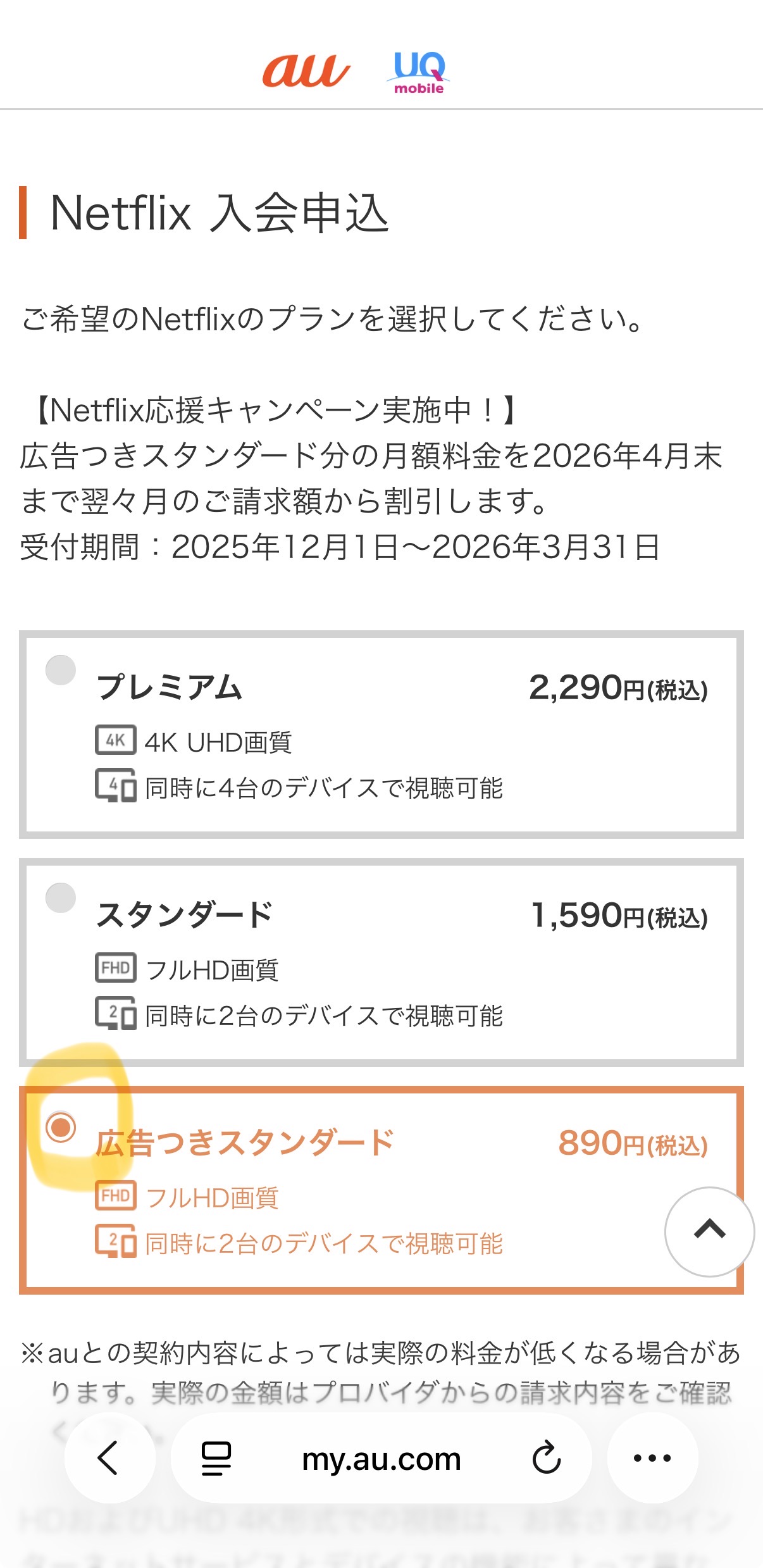STEP1:au/UQ mobileに加入する