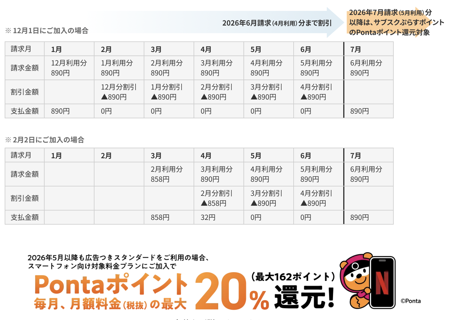 - プラスで 2026年7月請求以降はサブスクぷらすポイントでPontaポイントが最大20%還元されます💚